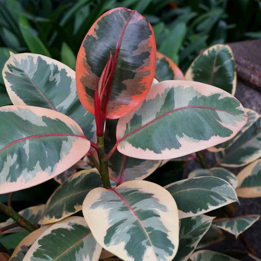 The Ficus elastica 'Tineke' - Variegated Rubber Plant
