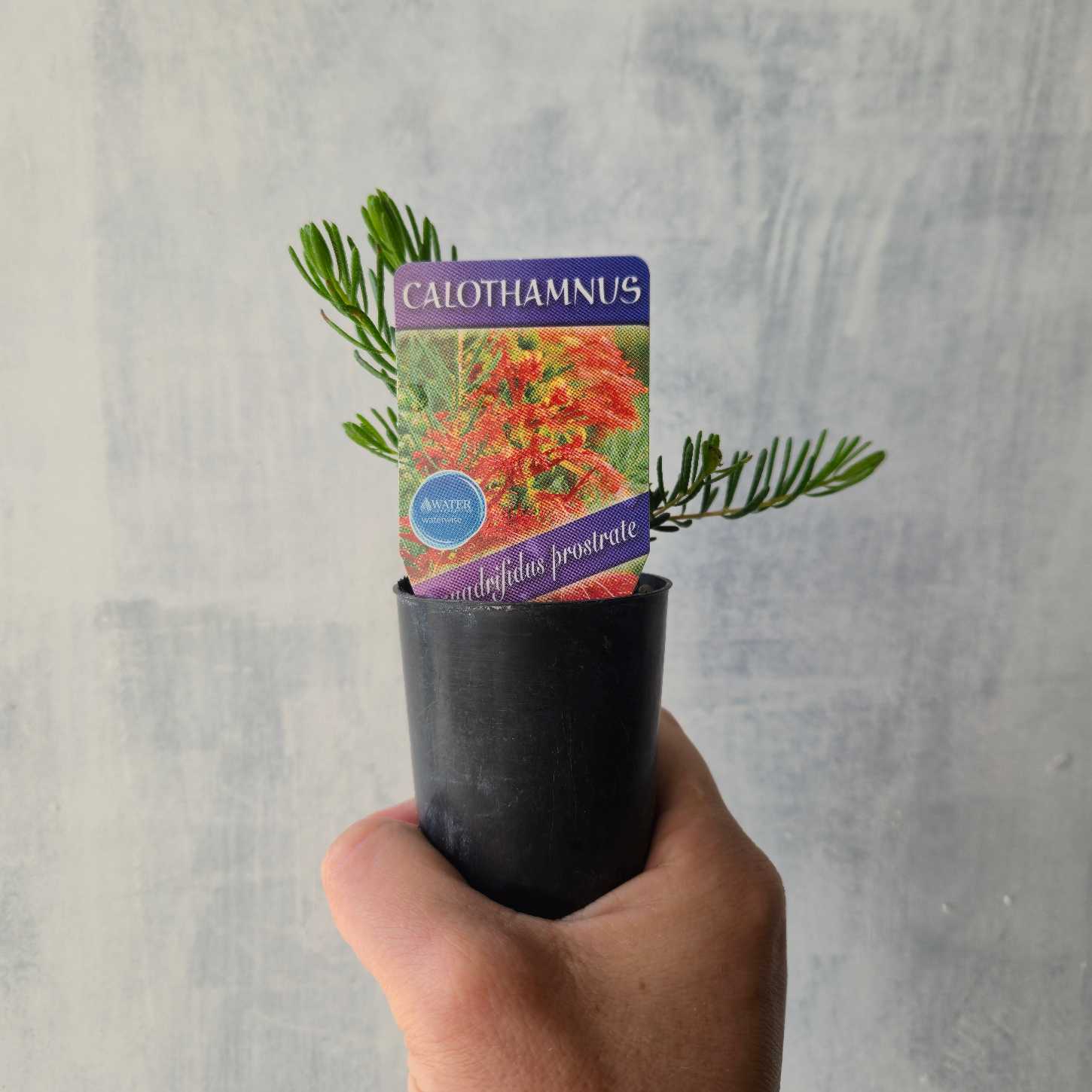 Calothamnus quadrifidus prostrate is a lovely spreading shrub that produces clusters of flowers on one side of the stem in spring. Flowers are typically red, but yellow forms also exist. Following flowering are woody capsules, which can be held by the plant for years.