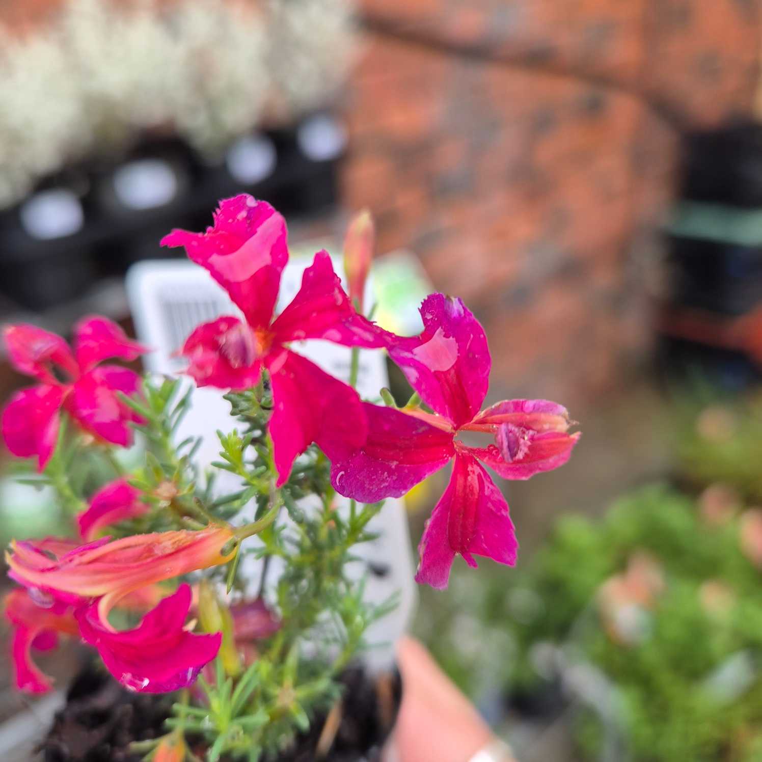 Lechenaultia Lola is a small, evergreen shrub/ground cover with bright pink flowers during winter and spring.